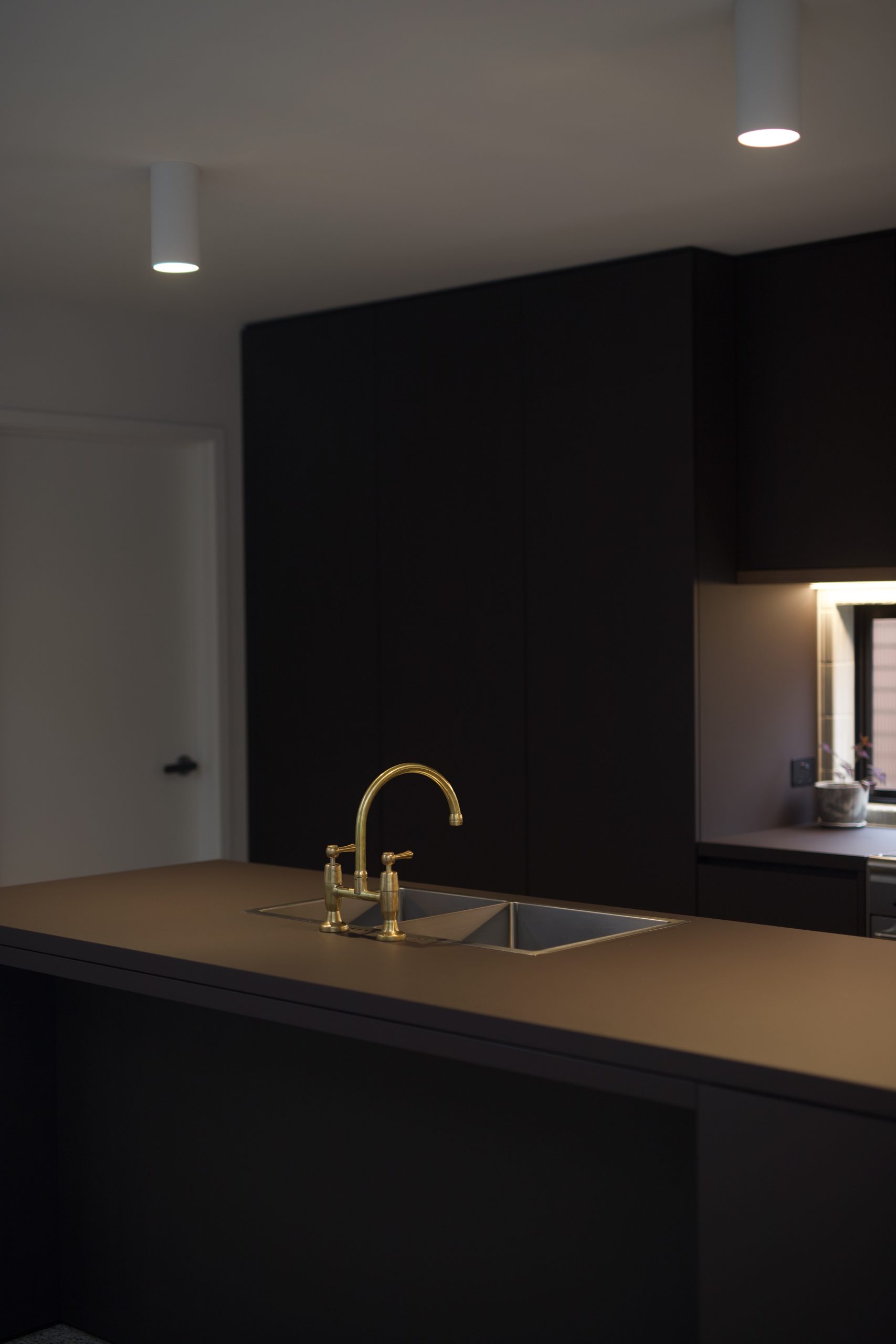 Bold design choices along with curves are displayed throughout and who knew that a black kitchen could be so stunning?
