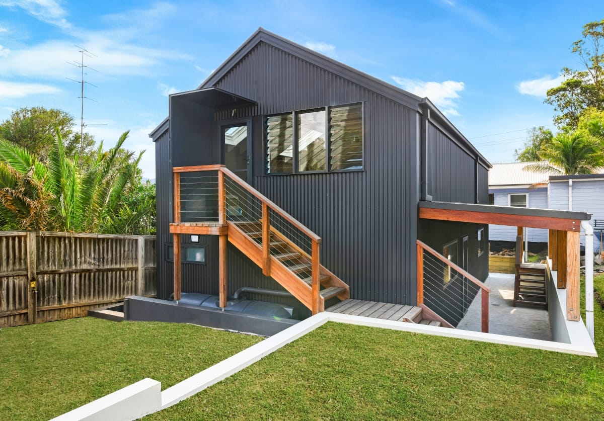 The matte monument Colorbond cladding is a great choice due it being a lightweight and durable material.